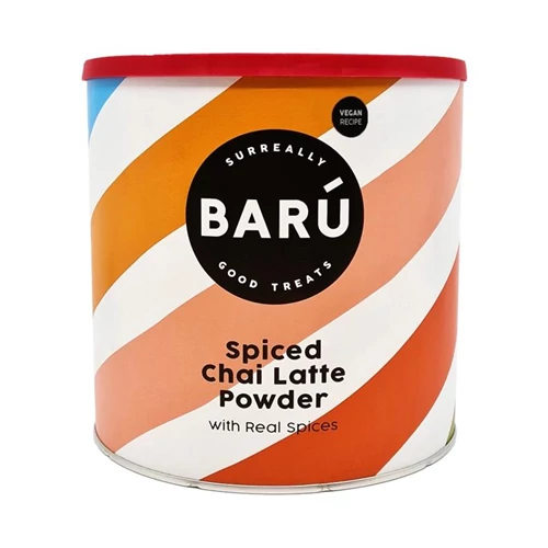 BARÚ Fűszeres Chai Latte por 1500g. Összetevők: Cukor, glükózszirup, kókusz olaj, fekete tea por (3%), fahéj (2%), fűszerek (1,7%), módosított keményítő, emulgeáló, E472 e, stabilizátor: E 340, színezék: béta-karotin. Allergének: Tejet, dióféléket, mogyorót, szóját feldolgozó üzemben készül. Minőségét megőrzi a csomagoláson feltűntetett időpontig. (nap/hó/év). Száraz, hűvös helyen tartandó. Származási hely: Belgium. Gyártó: BARÚ NV. Nettó súly: 1500g. Forg: GingerDesign Kft. 1087 Budapest, Asztalos Sándor u. 5-7. www.teabox.hu. A Baru chai latte titka a hagyományos receptben és a finom alapanyagokban (belga csokoládé és illatos vanília) rejlik. Finom és illatos téli ital magányos estékre vagy kettesben töltött romantikus percekhez. Non-GMO • Natural flavours • Real spices • Vegan recipe Servings per package : 100 (15 g) Serving size : 15 g Avg Quantity per: Serving/ 1 adag (15g) 100 g Energy/Energia 380 kJ/90 kcal 1902 kJ/ 452 kcal Fat/Zsír 3,5 g 18 g -of which saturates/melyből telített zsírok 3,2 g 16 g Carbohydrate/Szénhidrát 15 g 73 g -of which sugars/melyből cukor 9,1 g 45 g Protein/Fehérje 0,3 g 1,2 g Salt/Só 0,1 g 0,51 g