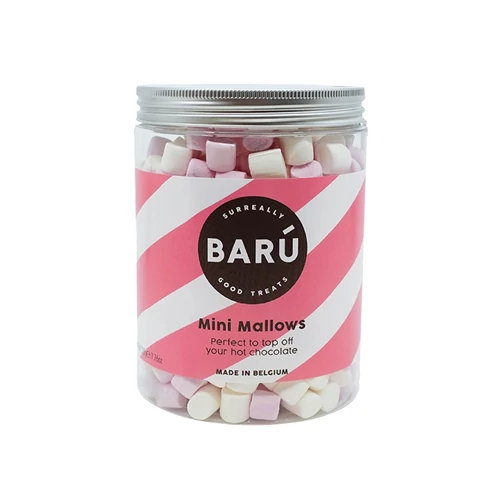 BARÚ Mini pillecukorkák ajándékcsomagolásban. Összetevők: glükóz fruktóz szirup, cukor, víz, zselatin, dextróz, kukoricakeményítő, terészetes ízesítés: vanília, természetes színezék: cékla. Tejet, dióféléket, mogyorót, szóját, glutént feldolgozó üzemben készül. Minőségét megőrzi a csomagoláson feltűntetett időpontig. (nap/hó/év). Száraz, hűvös helyen tartandó.(12 C -18 C). Származási hely: Belgium. Gyártó: BARÚ NV. Nettó súly: 220g. Forg: GingerDesign Kft. 1087 Budapest, Asztalos Sándor u. 5-7. www.teabox.hu. 25 adag/csomag 1 adag: 8.8 g Avg Quantity per serving 8,8 g 100g Energy 123 kJ / 29 kcal 1396 kJ / 329 kcal Fat 0 g < 0,5 g - of which saturates 0 g < 0,1 g Carbohydrate 7 g 79 g - of which sugars 6,1 g 69 g Protein < 0,5 g 3,2 g Salt < 0,01 g 0,02 g CLAIMS Természetes • Non-GMO • Nincs mesterséges színezék • Nincs mesterséges ízesítés • Made in Belgium INGREDIENTS MINI MARSHMALLOWS Glucose fructose syrup, sugar, water, gelatin, dextrose, maize starch, natural flavour: vanilla, natural colour: beetroot red. NUTRITION INFORMATION Servings per package: 25 Serving size: 8.8 g Avg Quantity per serving 8,8 g 100g Energy 123 kJ / 29 kcal 1396 kJ / 329 kcal Fat 0 g < 0,5 g - of which saturates 0 g < 0,1 g Carbohydrate 7 g 79 g - of which sugars 6,1 g 69 g Protein < 0,5 g 3,2 g Salt < 0,01 g 0,02 g ALLERGENS Produced in a factory that also handles milk, soya, nuts, gluten and peanuts. CLAIMS Natural • Non-GMO • No artificial colours • No artificial flavours • Made in Belgium SK BARÚ Mini marshmallows v darčekovom balení. Zloženie: glukózovo-fruktózový sirup, cukor, voda, želatína, dextróza, kukuričný škrob, prírodná aróma: vanilka, prírodné farbivo: cvikla. Alergény: vyrobené v zariadení na spracovanie mlieka, orechov, arašidov, sóje, lepku. Minimálna trvanlivosť: do dátumu uvedeného na obale (deň/mesiac/rok). Skladujte na chladnom a suchom mieste (12 C -18 C). Miesto pôvodu: Belgicko. Výrobca: BARÚ NV. Čistá hmotnosť: 220 g. Distribútor: GingerDesign Kft. 1087 Budapest, Asztalos Sándor u. 5-7. www.teabox.hu. CZ BARÚ Mini marshmallows v dárkovém balení Složení: glukózo-fruktózový sirup, cukr, voda, želatina, dextróza, kukuřičný škrob, přírodní aroma: vanilka, přírodní barvivo: červená řepa. Alergeny: Vyrábí se v závodě, který zpracovává mléko, ořechy, arašídy, sóju a lepek. Minimální trvanlivost: do data uvedeného na obalu (den/měsíc/rok).. Skladujte na suchém a chladném místě. (12C-18C). Místo původu: Belgie. Výrobce: BARÚ NV. Čistá hmotnost: 220g. Distributor: GingerDesign Kft. 1087 Budapest, Asztalos Sándor u. 5-7. www.teabox.hu.