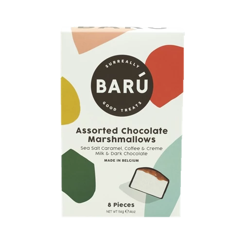 BARÚ Pillecukor válogatás -111g. 8 db. Összetevők: Pillecukor (52.7 %) (glükóz fruktóz szirup, cukor, víz, dextróz, zselatin, kukorica keményítő, méz, őrölt vanília, savszabályozó: tejsav), étcsokoládé (21.8 %) (kakaó massza, cukor, kakaóvaj, vajolaj (tej), emulgeáló: szójalecitin, természetes ízesítés: vanília), tejcsokoládé (21.8 %) (cukor, tejpor, kakaóvaj, kakaó massza, emulgeáló: szójalecitin, természetes ízesítés: vanilia), karamellás sóvirág (3.3 %) (glükóz fruktóz szirup, cukor, sűrített tej, sós vaj (tej), tejpor, kakaóvaj, kakaómassza, víz, só, emulgeáló: szójalecitin, természetes ízesítés: vanília, sóvirág (0.05 %)), liofilizált málna (0.4 %). Kakaó szárazanyag tartalom étcsokoládéban: min. 54 % Kakaó szárazanyag tartalom az tejcsokoládéban: min. 30 % Tej szárazanyag tartalom: min. 23 %. Allergének: Tejet és szóját tartalmaz! Tejet, dióféléket, mogyorót, szóját, glutént, szezámmagot, és tojást feldolgozó üzemben készült. Minőségét megőrzi a csomagoláson feltűntetett időpontig. (nap/hó/év). Száraz, hűvös helyen tartandó. (12°C -18°C). Származási hely: Belgium. Gyártó: BARÚ NV. Nettó súly: 111g. Forg: GingerDesign Kft. 1087 Budapest, Asztalos Sándor u. 5-7. www.teabox.hu. INGREDIENTS Marshmallow (52.7 %) (glucose fructose syrup, sugar, water, dextrose, gelatin, maize starch, honey, ground vanilla bean, acidity regulator: lactic acid), dark chocolate (21.8 %) (cocoa mass, sugar, cocoa butter, butter oil (milk), emulsifier: soya lecithin, natural flavour: vanilla), milk chocolate (21.8 %) (sugar, whole milk powder, cocoa butter, cocoa mass, emulsifier: soya lecithin, natural flavour: vanilla), Fleur de Sel caramel (3.3 %) (glucose fructose syrup, sugar, condensed milk, salted butter (milk), whole milk powder, cocoa butter, cocoa mass, water, salt, emulsifier: soya lecithin, natural flavour: vanilla, Fleur de Sel (0.05 %)), freeze-dried raspberries (0.4 %). Dark chocolate contains cocoa solids 54 % minimum. Milk chocolate contains cocoa solids 30 % minimum and milk solids 23 % minimum. NUTRITION INFORMATION Servings per package: 8 (13.88 g) Serving size: 13.88 g Avg Quantity per Serving Avg Quantity per 100g Energy 247 kJ / 59 kcal 1781 kJ / 423 kcal Fat 2.2 g 16 g - of which saturates 1.3 g 9.3 g Carbohydrate 9.2 g 66 g - of which sugars 9.0 g 65 g Protein 0.5 g 3.9 g Salt 0.01 g 0.09 g ALLERGENS Contains milk and soya. Produced in a factory that also handles nuts, gluten, sesame and egg. CLAIMS Natural • Non-GMO • No artificial colours • No artificial flavours • Made in Belgium • Palm oil free