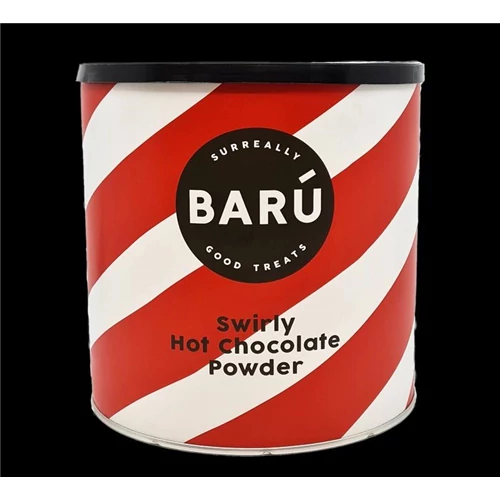 BARÚ Swirly Forró Csokoládé por: Összetevők: cukor, kakaópor (32%). Allergének: Tejet, dióféléket, mogyorór, szóját, glutént feldolgozó üzemben készül. Minőségét megőrzi a csomagoláson feltűntetett időpontig. (nap/hó/év). Száraz, hűvös helyen tartandó. Származási hely: Belgium. Gyártó: BARÚ NV. Nettó súly: 1500g. Forg: GingerDesign Kft. 1087 Budapest, Asztalos Sándor u. 5-7. www.teabox.hu. Apró kis étcsokoládé figurák bújnak meg a kakaópor között, melyek forró tejjel érintkezve felolvadnak. Az eredmény pedig egy lágy krémes csokiital. Makes 75 cups of delicious hot chocolate! Natural • Non-GMO • No artificial colours • No artificial flavours • Vegan recipe Servings per package : 75 (20 g) Serving size : 20 g Avg. Quantity : Serving(20 g) 100 g Energy 332 kJ / 78 kcal 1659 kJ / 392 kcal Fat 1,3 g 6,7 g - of which saturates 0,8 g 4 g Carbohydrate 14 g 71 g - of which sugars 14 g 68 g Protein 1,3 g 6,4 g Salt 0 g 0,02 g