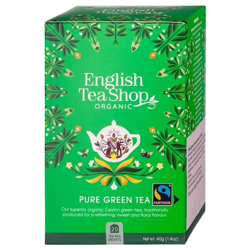 ETS 20 Ceylon zöld bio tea - 20 db teafilter. Összetevők: ceyloni zöld tea (100%)*. *Összetevők: Ellenőrzött ökológiai gazdálkodásból. Gyártó: The English Tea Shop Ltd. London, Anglia. Csomagolva: Sri Lanka. Tárolás: Hűvös száraz helyen. Minőségét megőrzi: lásd a doboz alján. Nettó súly: 40 g. Ellenőrizte: Control Union/CU LK –BIO-149. Nem EU mezőgazdaság. Forg.: Ginger Design Kft. 1087 Budapest, Asztalos Sándor u. 5-7. www.gingerdesign.hu; www.teabox.hu; Forgalmazást ellenőrző szerv: Bio Garancia Kft. (HU-ÖKO-02)