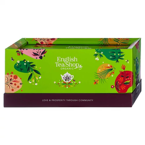 ETS ETS 40 Wellbeing Favourites bio teaválogatás -40db papírfilteres teaválogatás 8x Zöld tea bio tea Összetevők: Zöld tea* (100%)." 8x Fekete Chai bio tea Összetevők:: fekete tea* (33%), gyömbér* (19%), fahéj* (13%), szegfűszeg* (8%), kurkuma* (7%), szerecsendió* (7%), fekete bors* (6%), szerecsendió virág* (5%), kardamom* (2%). 8x Citromfű Gyömbér Citrus bio tea Összetevők: citromfű* (49%), narancshéj* (24%), gyömbér* (22%), lime ízesítés* (2.5%), mandarin ízesítés* (2.5%)." 8x Shape Me bio tea Összetevők: zöld tea* (54%), fahéj* (29%), gyömbér* (12%), ginseng* (1%), acai bogyó* (4%). 8x Happy Me bio tea Összetevők: citromfű* (38.5%), alma* (8%), narancs héj* (16%), gyömbérgyökér* (14%), kardamom* (3%), koriander* (7%), fahéj* (13%), körömvirág szirom* (0.5%) *Összetevők: Ellenőrzött ökológiai gazdálkodásból. Gyártó: The English Tea Shop Ltd. London, Anglia. Csomagolva: Sri Lanka. Tárolás: Hűvös száraz helyen. Minőségét megőrzi: lásd a doboz alján. Nettó súly: 68g. Ellenőrizte: Control Union/CU LK –BIO-149 Nem EU mezőgazdaság. Forg.: Ginger Design Kft. 1087 Budapest, Asztalos Sándor u. 5-7. www.gingerdesign.hu; www.teabox.hu; Forgalmazást ellenőrző szerv: Bio Garancia Kft. (HU-ÖKO-02)
