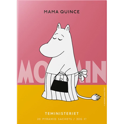 MOOMIN Mama Quince tea -20 db selyempiramis teafilter. Összetevők: fekete tea (90%), alma, ízesítés,napraforgó virág. Javasolt áztatási idő: 80°C vízben 2-3 percig áztatva. Gyártó: TEMINISTERIET, Svédország. Tárolás: száraz, hűvös helyen. Minőségét megőrzi: lásd a doboz alján. Nettó súly: 30g. Forg.: Ginger Design Kft. 1087 Budapest, Asztalos Sándor u. 5-7. www.gingerdesign.hu; www.teabox.hu;